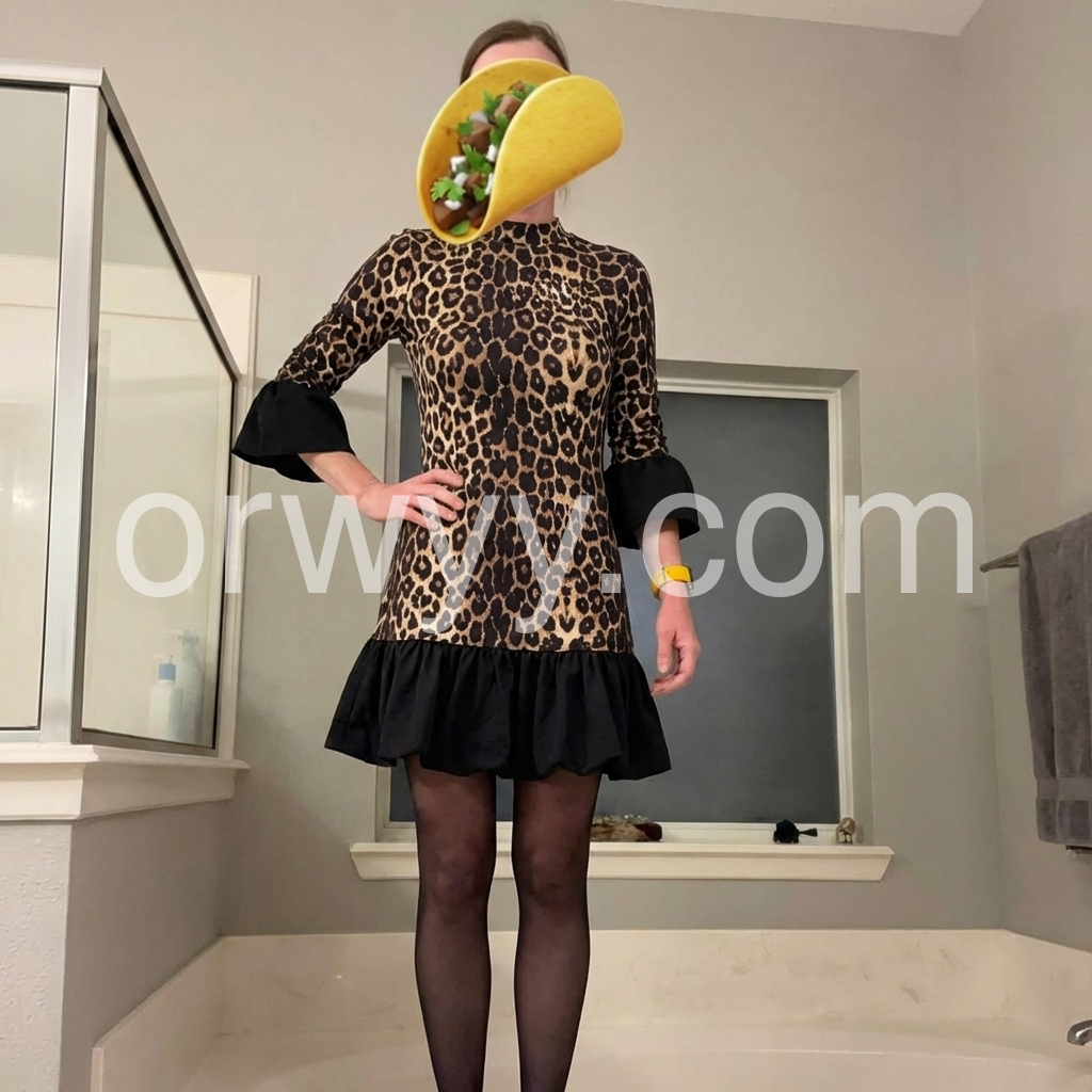 This dress makes me feel confident and fun. The leopard pattern looks rich and the black skirt ruffle adds movement. I’ve worn it with heels and also with boots—both ways look great. It’s definitely a wardrobe staple.