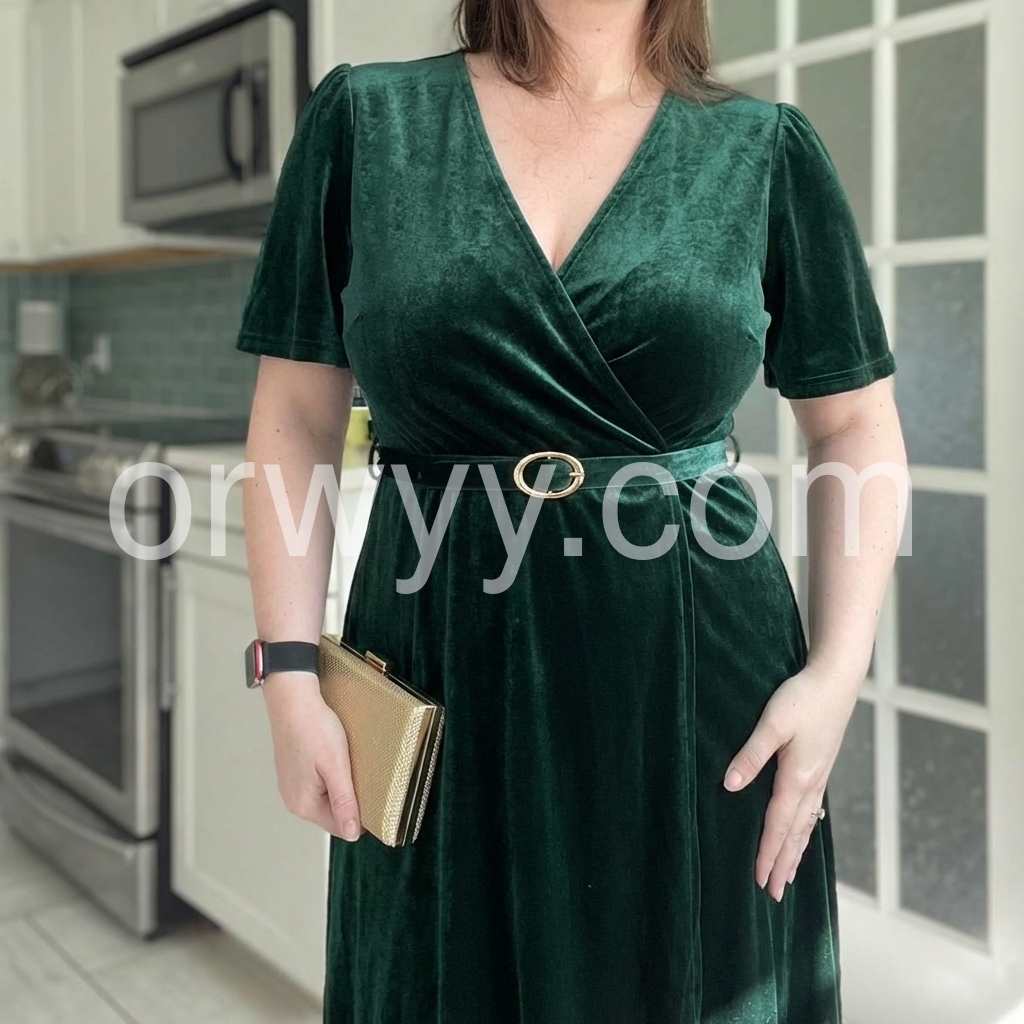 Did I need another dress? No. Did I need this one for a wedding? Absolutely. 😍 The velvet material feels luxe, the emerald color is gorgeous, and it’s way more flattering than I expected. I got so many compliments wearing it. The only con for me is the deep V-cut. I have a larger chest, so I layered a tank underneath and it worked perfectly. Other than that, this dress exceeded my expectations! The belt was also a gift. thank you :) 10/10 would recommend.