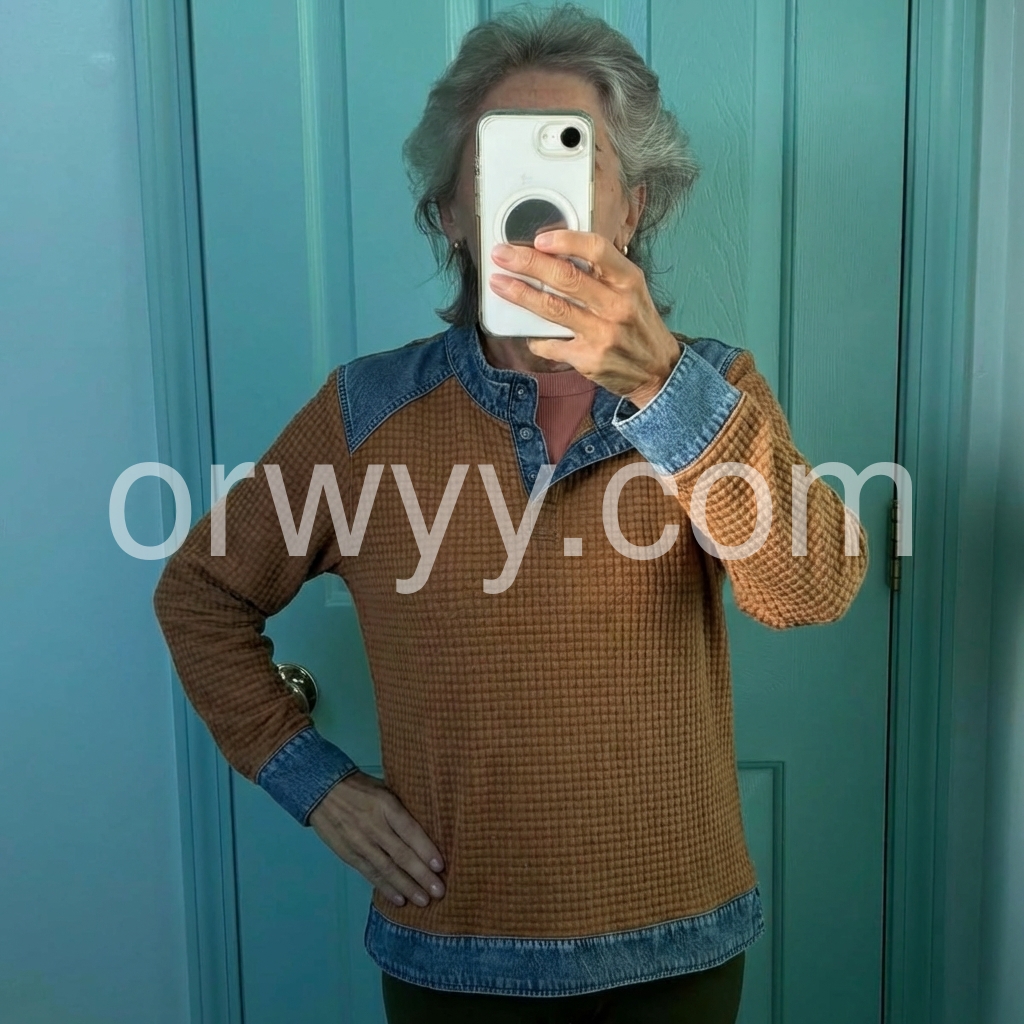 I’m really impressed with this top. The waffle pattern gives it a unique look, and the denim contrast makes it stand out in a good way. I also like that it’s easy to match with different outfits—perfect for someone who wants both style and comfort.
