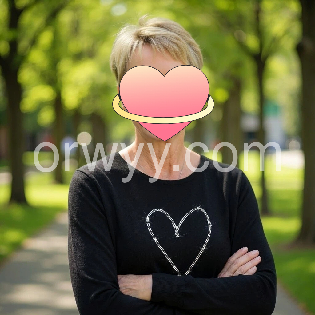 This top is such a fun piece. The heart design shines nicely and gives the shirt a nice “dress up” look while still being casual. The long sleeves are comfortable, and the neckline sits nicely. I’ve worn it out and got compliments—everyone noticed the heart detail. Fabric feels good quality and the overall look is exactly like the listing photos. Definitely a good purchase!