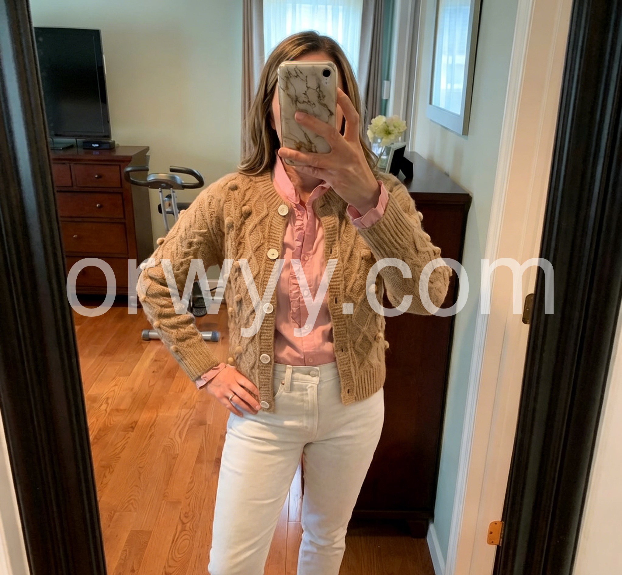 This cable-knit cardigan is the coziest fall piece I’ve added to my wardrobe! The fuzzy, warm fabric feels like a hug, and the pom-pom details add such a charming, vintage touch. The button-front design make it easy to layer over blouses or tees. I paired it with jeans and a collared shirt, and it instantly elevated my look. It’s thick enough for chilly days but not bulky—perfect for weekend walks or coffee dates!