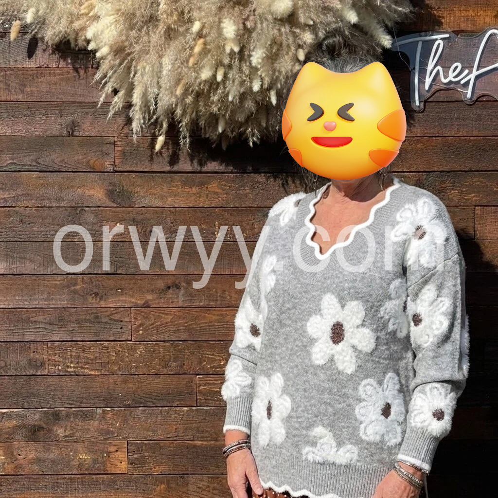 Wearing this sweater instantly makes my outfit feel special. The V-neck is flattering and gives a nice line to the chest area, and the knit fabric feels soft and cozy to the touch. The cute printed details (those little flowers and characters) are super eye-catching, with a balanced placement that doesn’t look crowded. I also love how it pairs effortlessly with jeans—the fit is comfortable, and it’s perfect for casual days when you still want to look put together.
