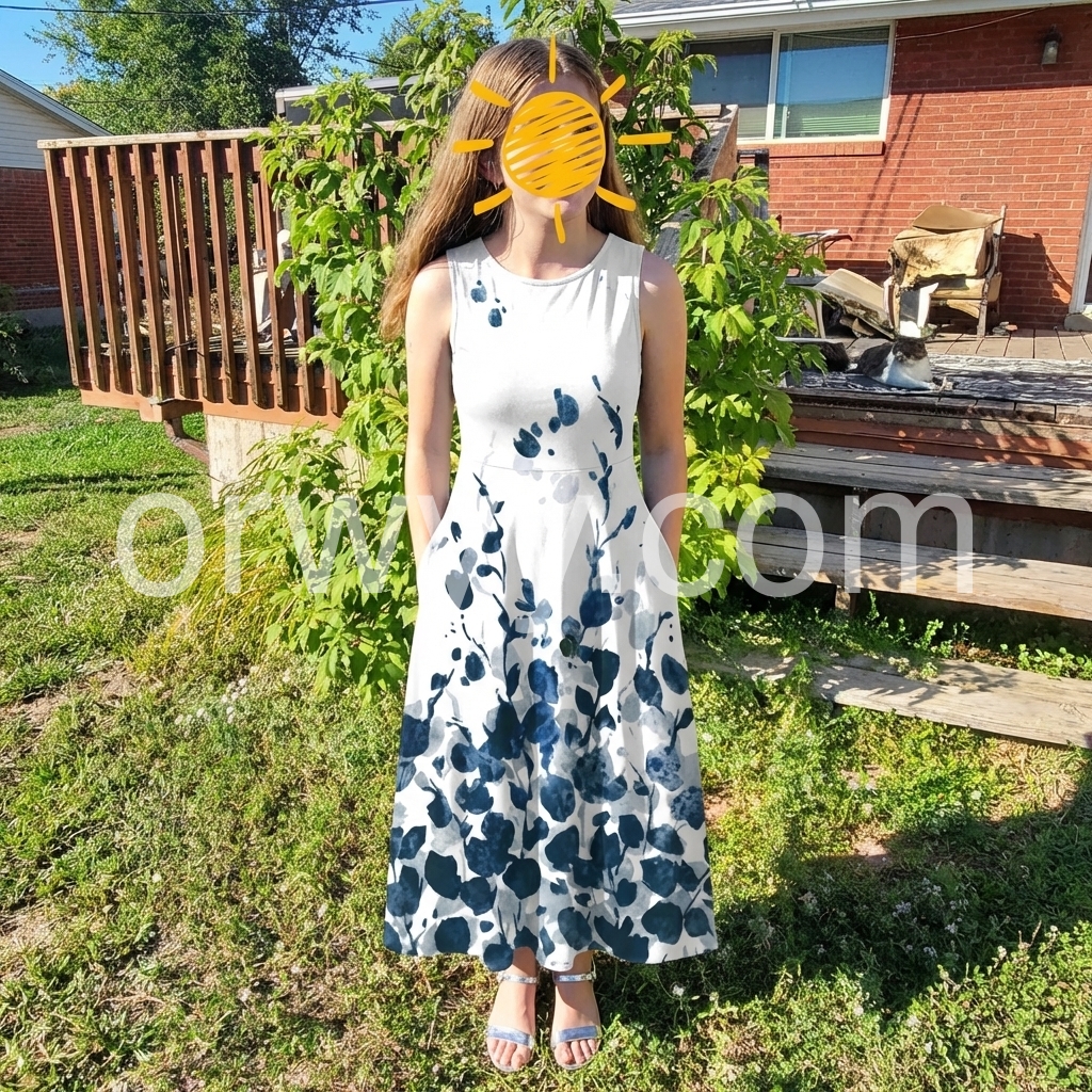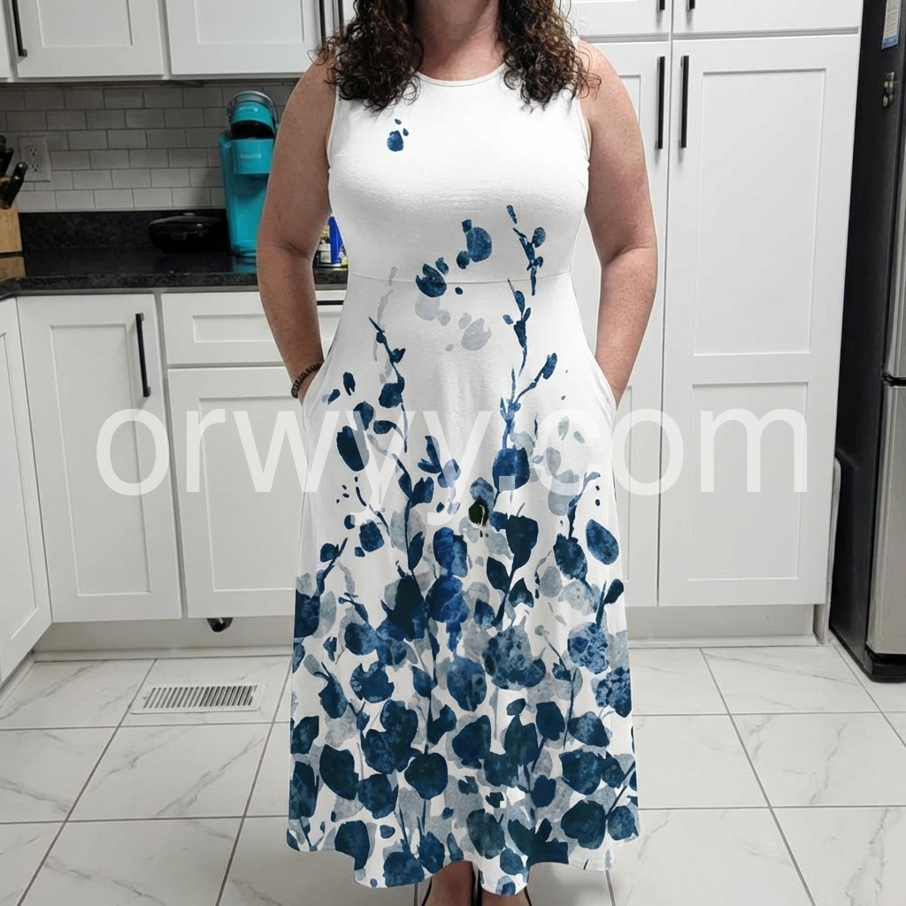 Absolutely love this dress! The blue floral print is so beautiful and looks just like watercolor. Best part? IT HAS POCKETS! The material is incredibly soft and flowy, perfect for summer weddings or just a day out. Highly recommend!