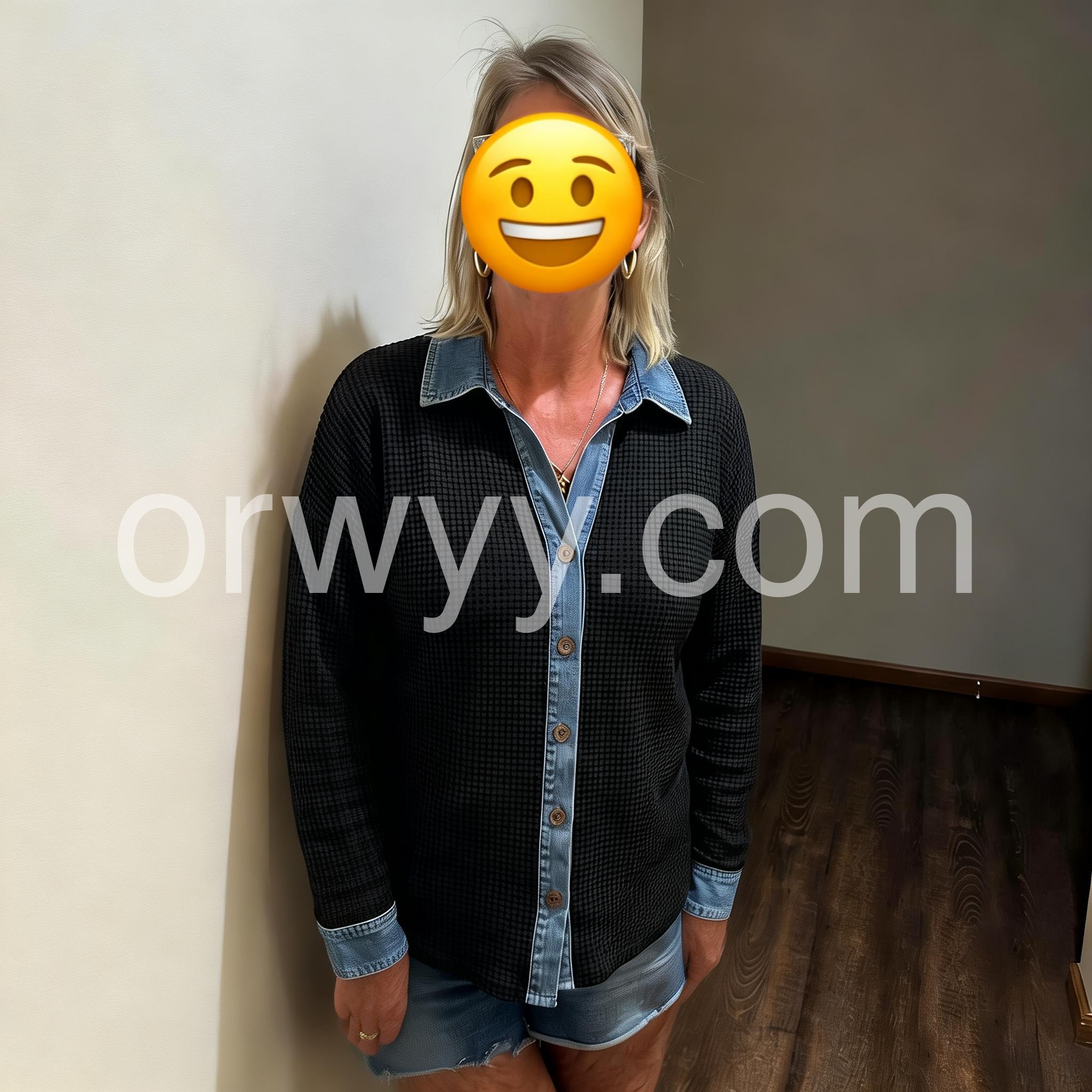 This top is amazing! The material is fantastic, it's thick, and the denim details on the collar and cuffs give it a special touch. Highly recommended!