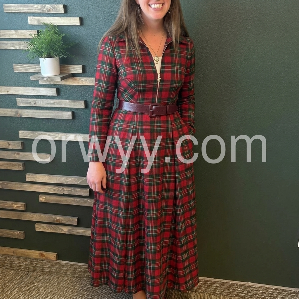 I bought this dress for a special occasion, and it exceeded my expectations. The plaid pattern is bold and stylish, and the long sleeves add a sophisticated touch. The seams and fit look carefully designed, especially around the waist where the belt sits nicely. Even after hours of wear, it feels comfortable and breathable. It instantly made me feel confident and chic.