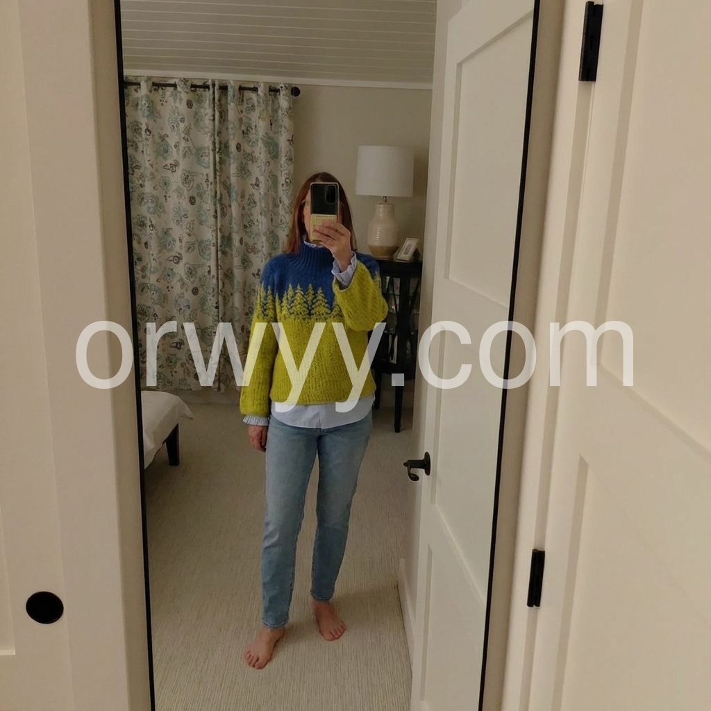Great purchase! This sweater is incredibly soft and warm, perfect for cold weather. The design is so cute—those little trees are such a sweet detail, and the color contrast is bold but stylish. The bell sleeves are a nice touch, adding a feminine flair without being too frilly. It fits well, not too tight or too baggy, and the high neck is great for blocking out the wind. I’ll definitely be buying more colors if they become available!