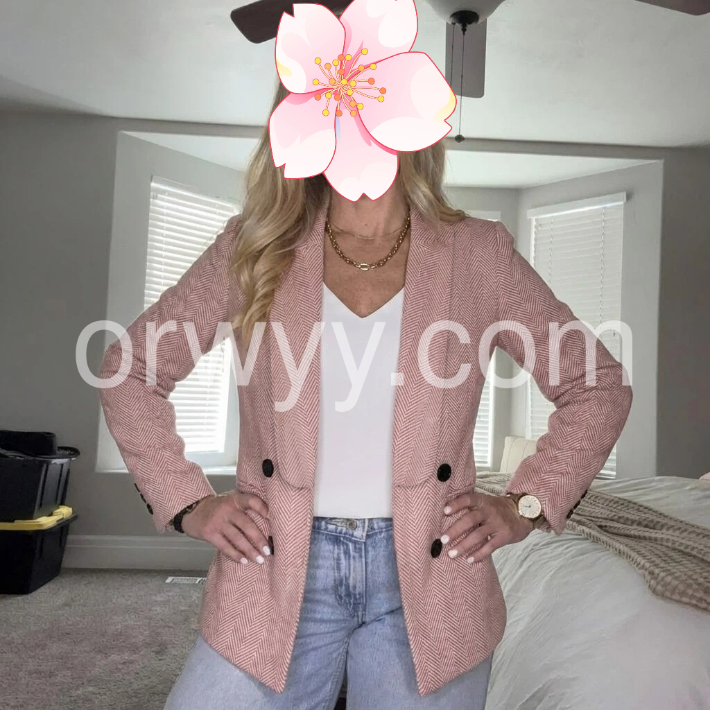 Absolutely love this blazer! It is perfect for wearing to the office with slacks or dressing down with jeans for a weekend brunch. The pink herringbone pattern is so unique and chic.