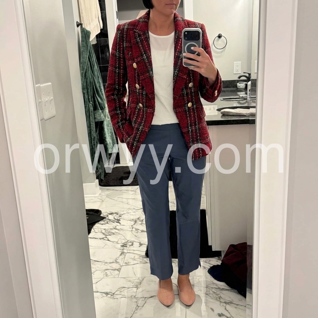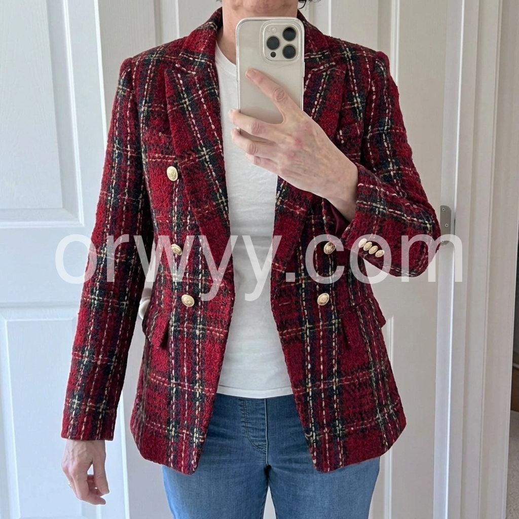 I bought this for a seasonal wardrobe refresh, and it turned out to be a great choice. The burgundy color is stunning, and the plaid design adds a cozy, artsy feel. It’s warm, flattering, and effortlessly stylish.