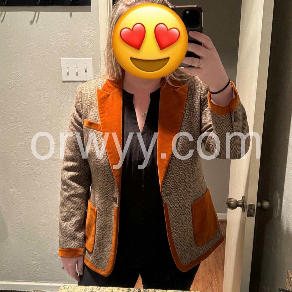 I absolutely love this blazer style coat! The warm herringbone texture looks super premium, and the caramel suede-like trim gives it a classy, high-end vibe. It fits nicely through the shoulders and lays really well without feeling bulky. I’ve worn it for both casual and slightly formal occasions, and it always looks put-together.