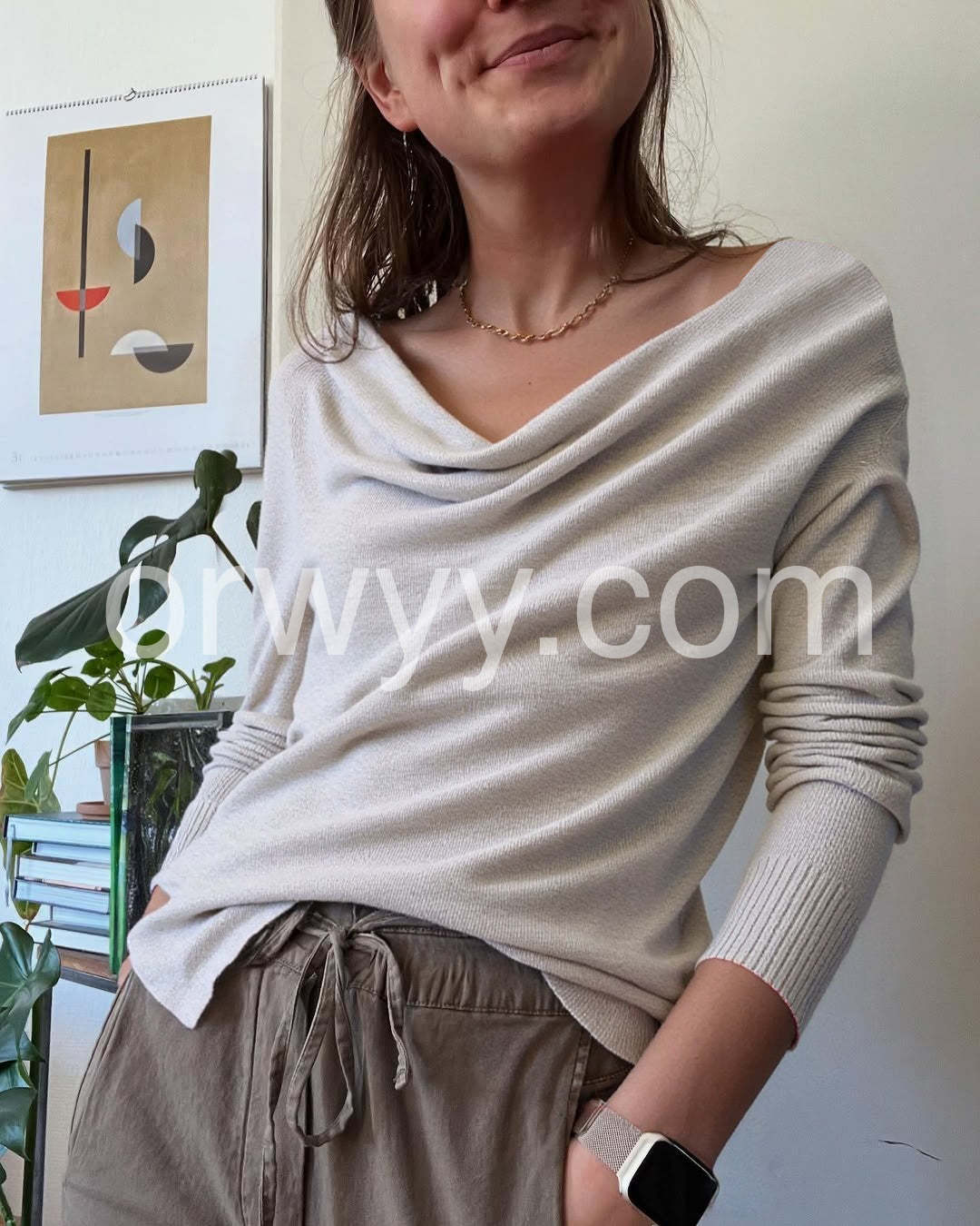 Absolutely love this sweater! The cowl neck drapes beautifully and gives it an elegant touch while still being super cozy. The light grey color goes with practically everything. Highly recommend!