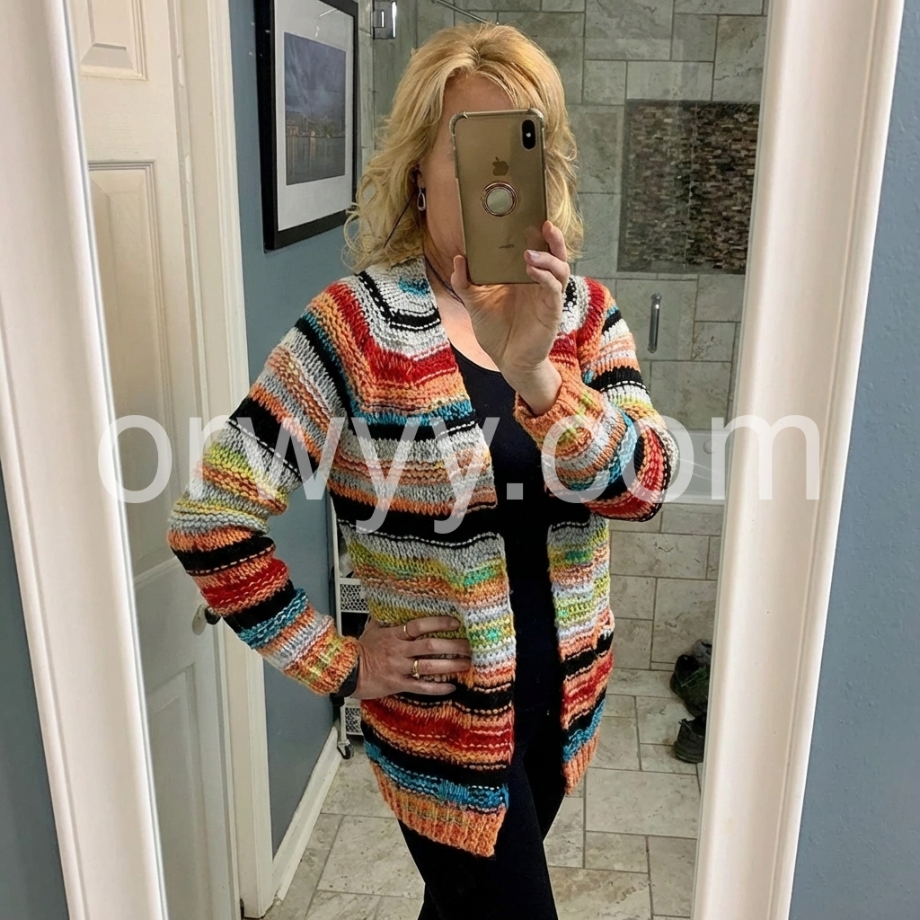 This is a very fun and versatile sweater. It’s a great cozy addition to my wardrobe. Great for fall! Love it!
